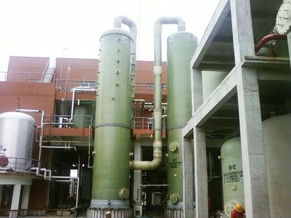 二.工藝流程中主要設備:氣體收集罩或收集管路,輸送管道,風機,吸收塔,排空管道(煙筒),氣體收集罩或收集管,排空管道可以采用不銹鋼,聚丙烯,玻璃鋼材質,輸送管道根據跨度和溫度選擇以上耐腐蝕行的管道,風機可以選擇玻璃鋼風機,不銹鋼風機,鐵質風機要進行防腐處理,鈦合金風機,吸收塔最好選擇玻璃鋼塔器,可以根據客戶的使用情況選擇不同性質的樹脂材料,達到耐久,經濟,維修費用低的目的。